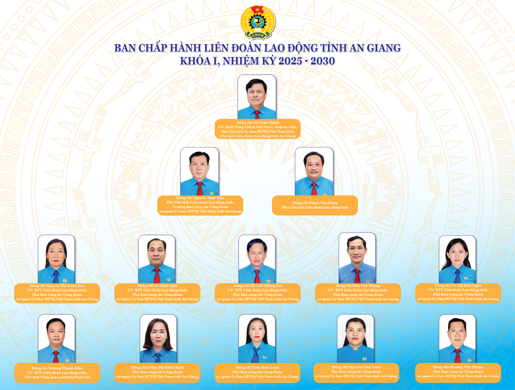 Ban Chấp hành Liên đoàn Lao động tỉnh Giới thiệu 31/07/2025 - aA + /ban-chap-hanh-lien-doan-lao-dong-tinh Tác giả Trang TTĐT Liên đoàn Lao động tỉnh An Giang Tin khác test Giới thiệu 29/12/2025 Các kì đại hội Giới thiệu 08/10/2025 Lịch sử hình thành và phát triển Giới thiệu 08/10/2025 Sổ tay Công đoàn Giới thiệu 04/08/2025 Điều lệ Công đoàn Việt Nam Giới thiệu 31/07/2025 Ban Thường vụ Liên đoàn Lao động tỉnh Giới thiệu 31/07/2025