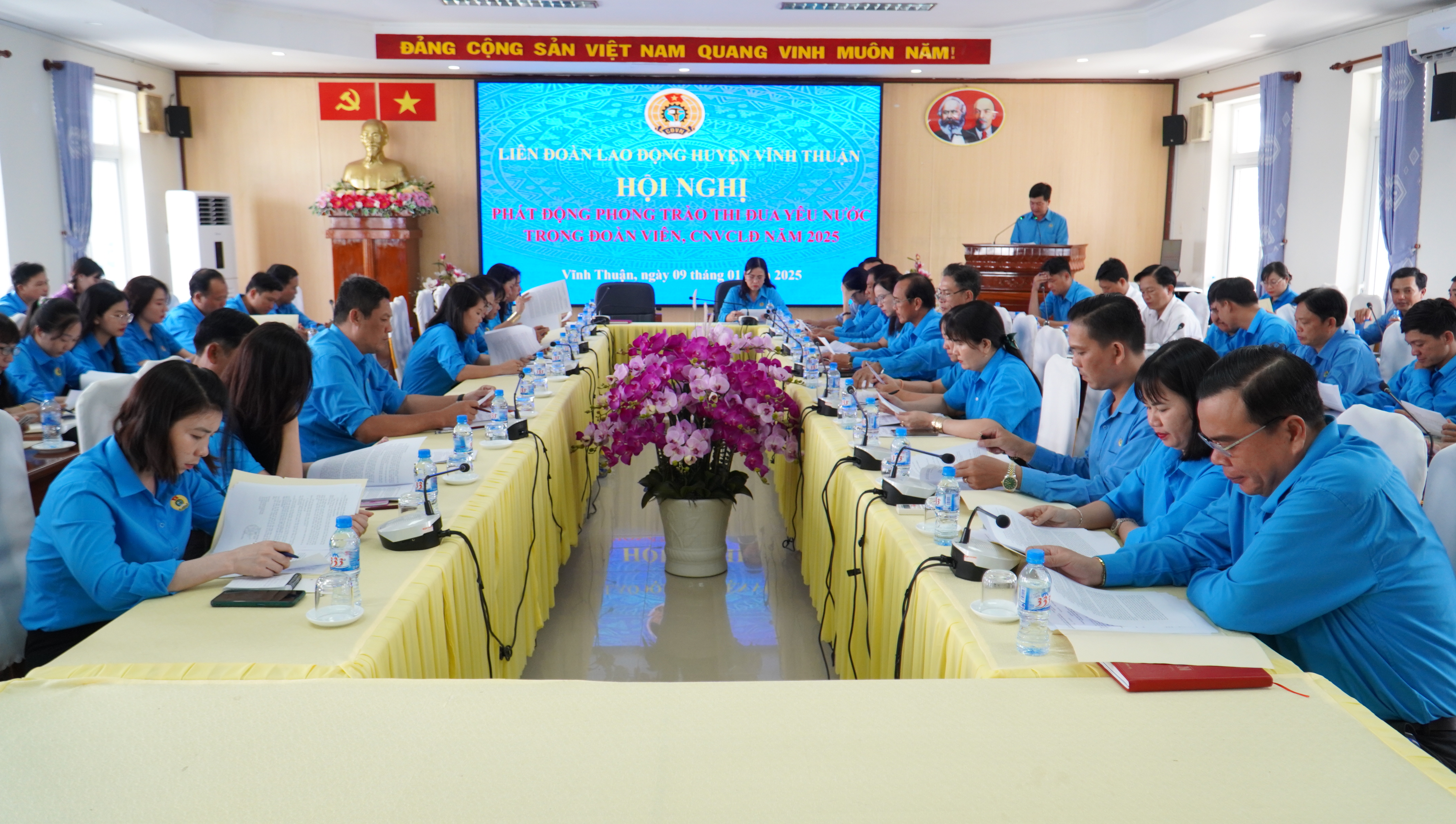 Phát biểu kết luận hội nghị đồng chí Lê Kim Thoa - HUV, Chủ tịch LĐLĐ huyện nhấn mạnh, năm 2025 là năm có ý nghĩa hết sức quan trọng, là năm diễn ra nhiều hoạt động thiết thực lập thành tích chào mừng Đại hội Đảng các cấp. Vì vậy mong muốn cán bộ, đoàn viên công đoàn tiếp tục phát huy truyền thống thi đua ái quốc, với tinh thần năng động, sáng tạo, khắc phục khó khăn ra sức phấn đấu thi đua lao động sản xuất và công tác với mục tiêu “Năng suất, chất lượng, hiệu quả, đảm bảo an toàn vệ sinh lao động”. Phấn đấu hoàn thành và hoàn thành vượt mức các chỉ tiêu, nhiệm vụ phát triển kinh tế-xã hội của địa phương, nhiệm vụ chính trị của cơ quan, đơn vị năm 2025, góp phần hoàn thành toàn diện các mục tiêu và vượt mức các chỉ tiêu kinh tế - xã hội giai đoạn 2021-2025; căn cứ vào tình hình thực tế ở địa phương, cơ quan, đơn vị và điều kiện hiện có, tổ chức thực hiện các nội dung thi đua phù hợp, thiết thực, hiệu quả, tránh phô trương, hình thức./.