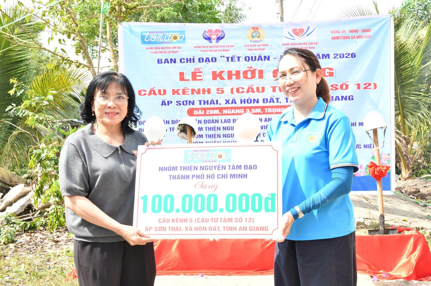 Ngày 8-3, Liên đoàn Lao động tỉnh An Giang phối hợp Ủy ban nhân dân xã Hòn Đất cùng các đơn vị tài trợ tổ chức lễ khởi công xây dựng cầu Kênh 5, ấp Sơn Thái, xã Hòn Đất.
