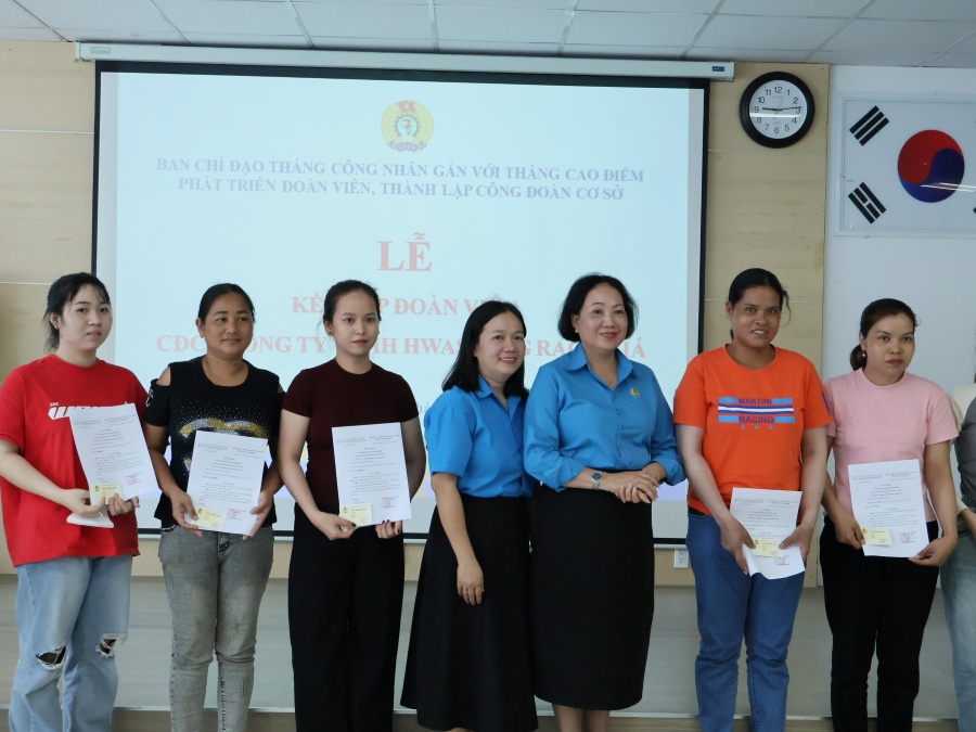 Tại buổi Lễ, Ban Chấp hành CĐCS Công ty TNHH Hawseung Rạch Giá công bố Quyết định kết nạp 22 công nhân lao động vào tổ chức Công đoàn Việt Nam, nâng tổng số đoàn viên trong Công ty đến nay được 7.250 đoàn viên/7.252 lao động. Từ đầu năm đến nay, Công đoàn cơ sở Công ty TNHH Hawseung Rạch Giá đã tổ chức 45 cuộc, kết nạp được 942 đoàn viên.