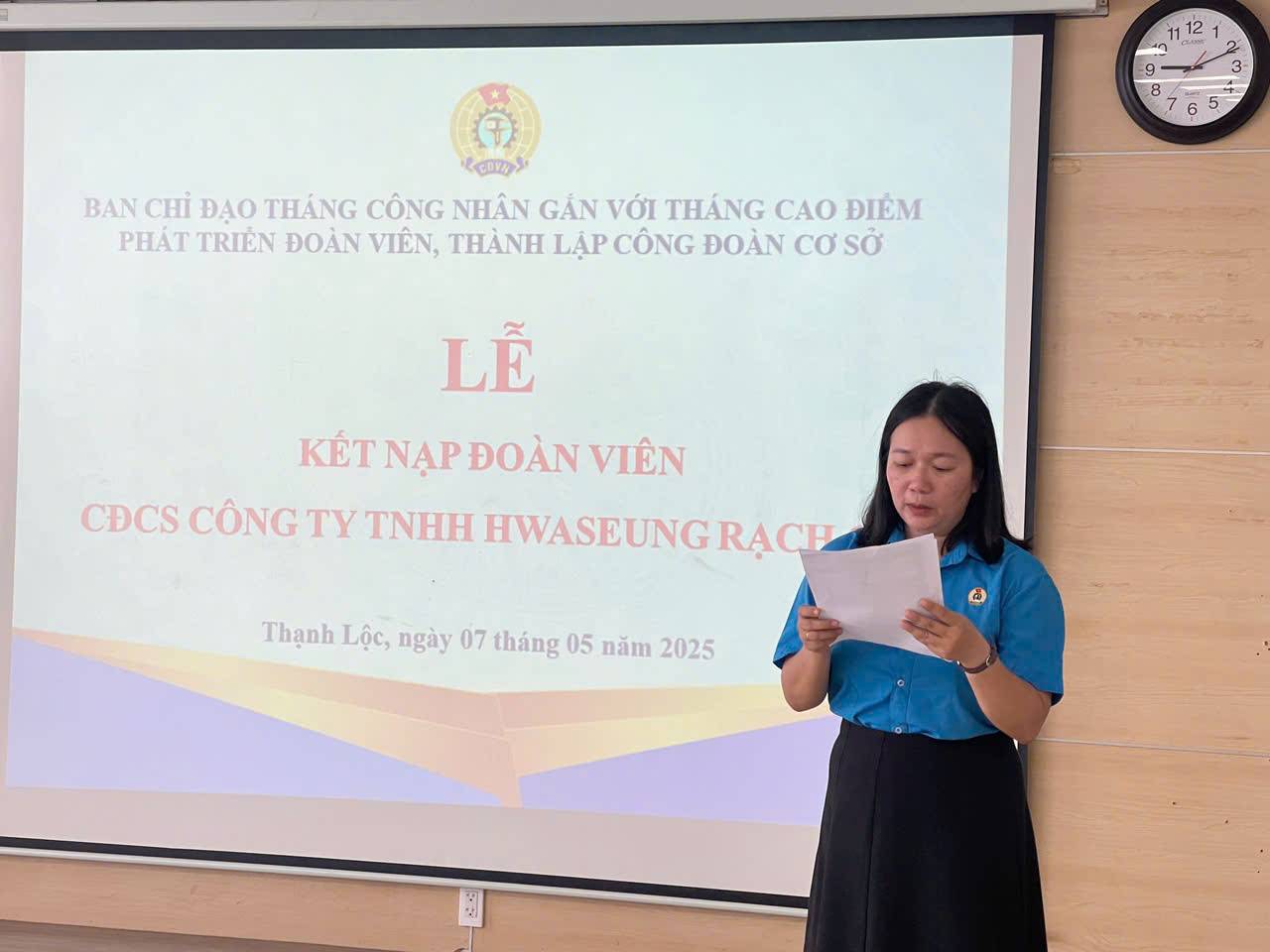 Sáng ngày 07/5/2025, Công đoàn cơ sở Công ty TNHH Hawseung Rạch Giá tổ chức Lễ kết nạp đoàn viên công đoàn năm 2025 cho 22 công nhân lao động tại Công ty .