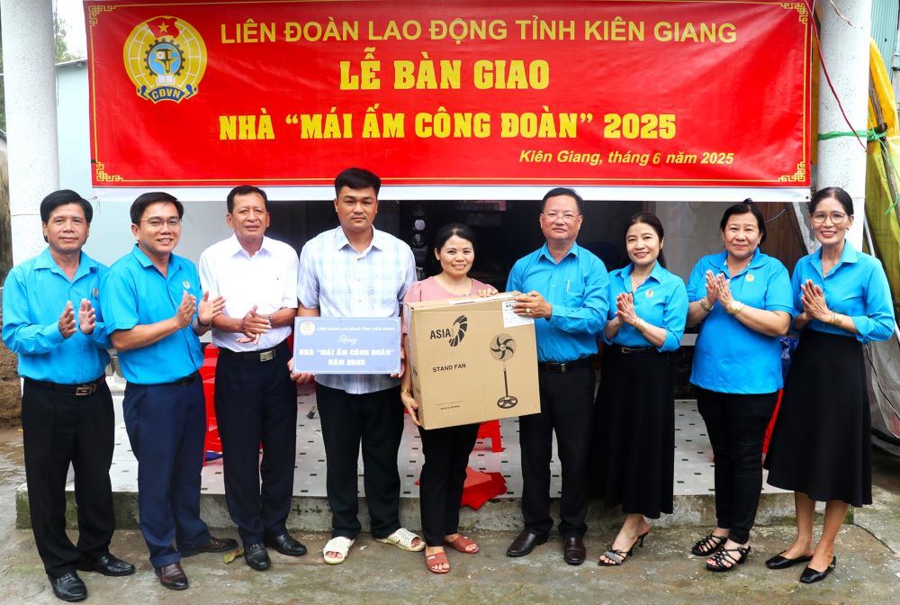 Ngày 8/6/2025, Công đoàn ngành Giáo dục thuộc Liên đoàn Lao động tỉnh Kiên Giang trao 2 nhà “Mái ấm Công đoàn” cho đoàn viên khó khăn, giúp thầy, cô giáo cải thiện về nhà ở, ổn định cuộc sống, yên tâm công tác.