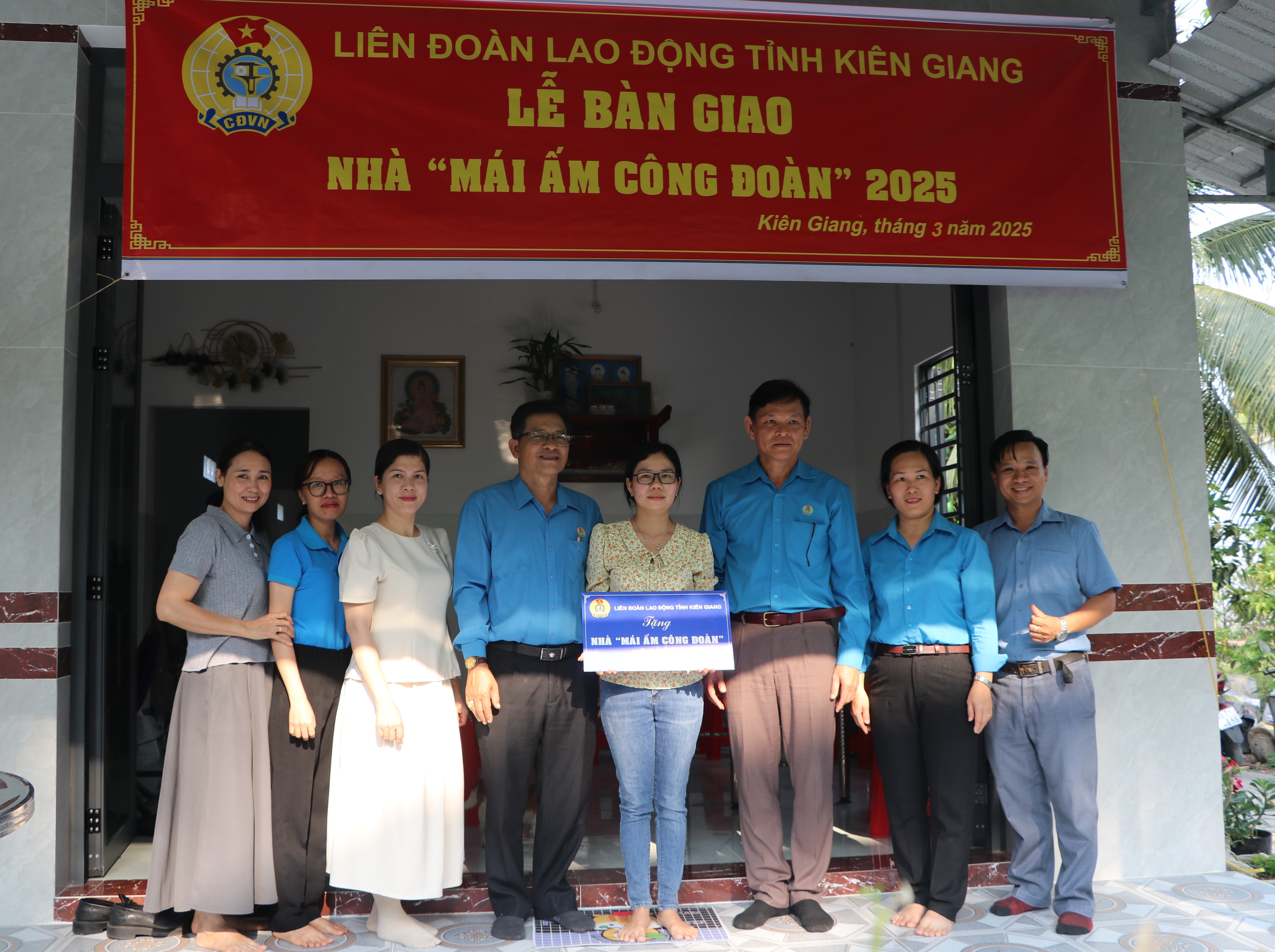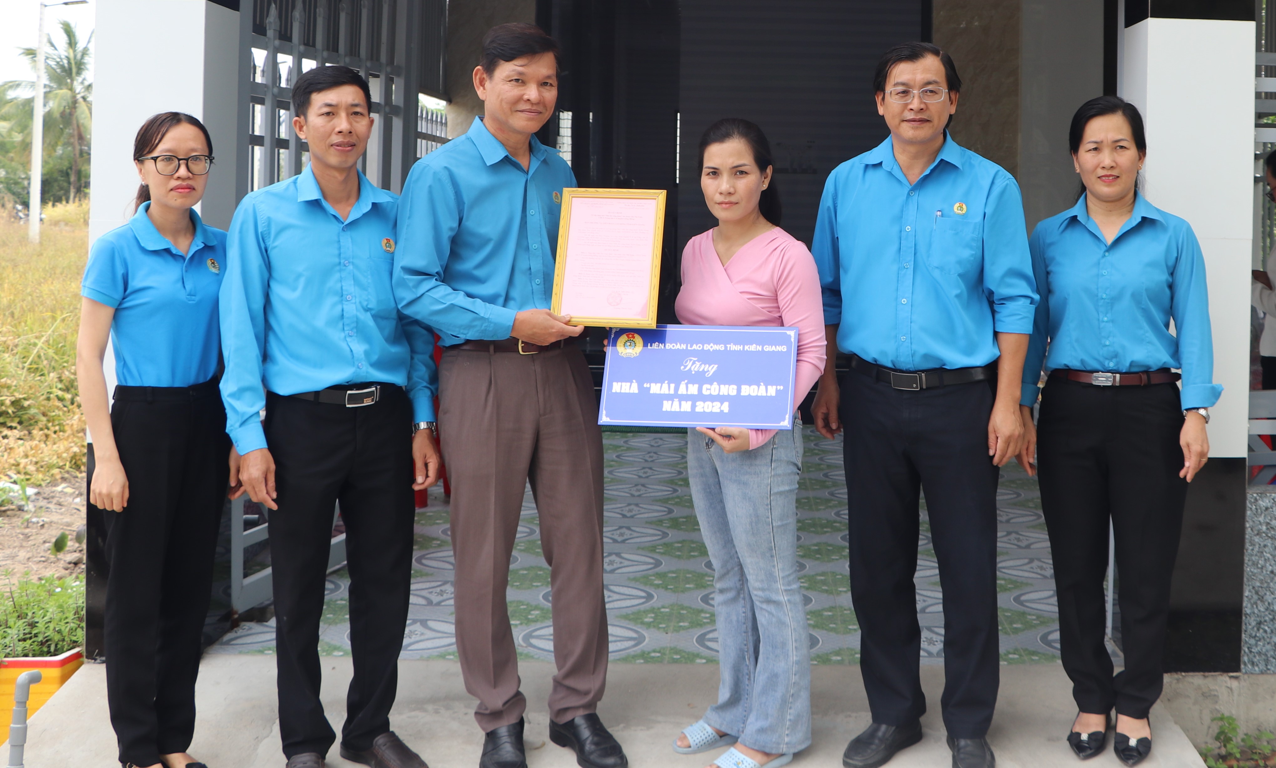 Căn nhà tọa lạc tại khu phố 6, thị trấn Giồng Riềng trị giá 100 triệu đồng, trong đó Quỹ “Mái ấm Công đoàn” hỗ trợ 50 triệu đồng, còn lại do đoàn viên tự bỏ kinh phí và cùng với sự chung tay, tiếp sức của cơ quan, bạn bè, đồng nghiệp, người thân. Chị Thị Lược, viên chức Trung tâm Y tế huyện Giồng Riềng là mẹ đơn thân, bản thân lại có tật ở chân, đang nuôi con nhỏ đi học. Trước đó hai mẹ con chị sinh sống trong căn trọ ngột ngạt, không đảm bảo an toàn. Chị Lược bày tỏ: “Tôi thực sự xúc động và biết ơn, “Mái ấm Công đoàn” là nguồn động viên, khích lệ tôi vượt qua mọi khó khăn trong cuộc sống”.